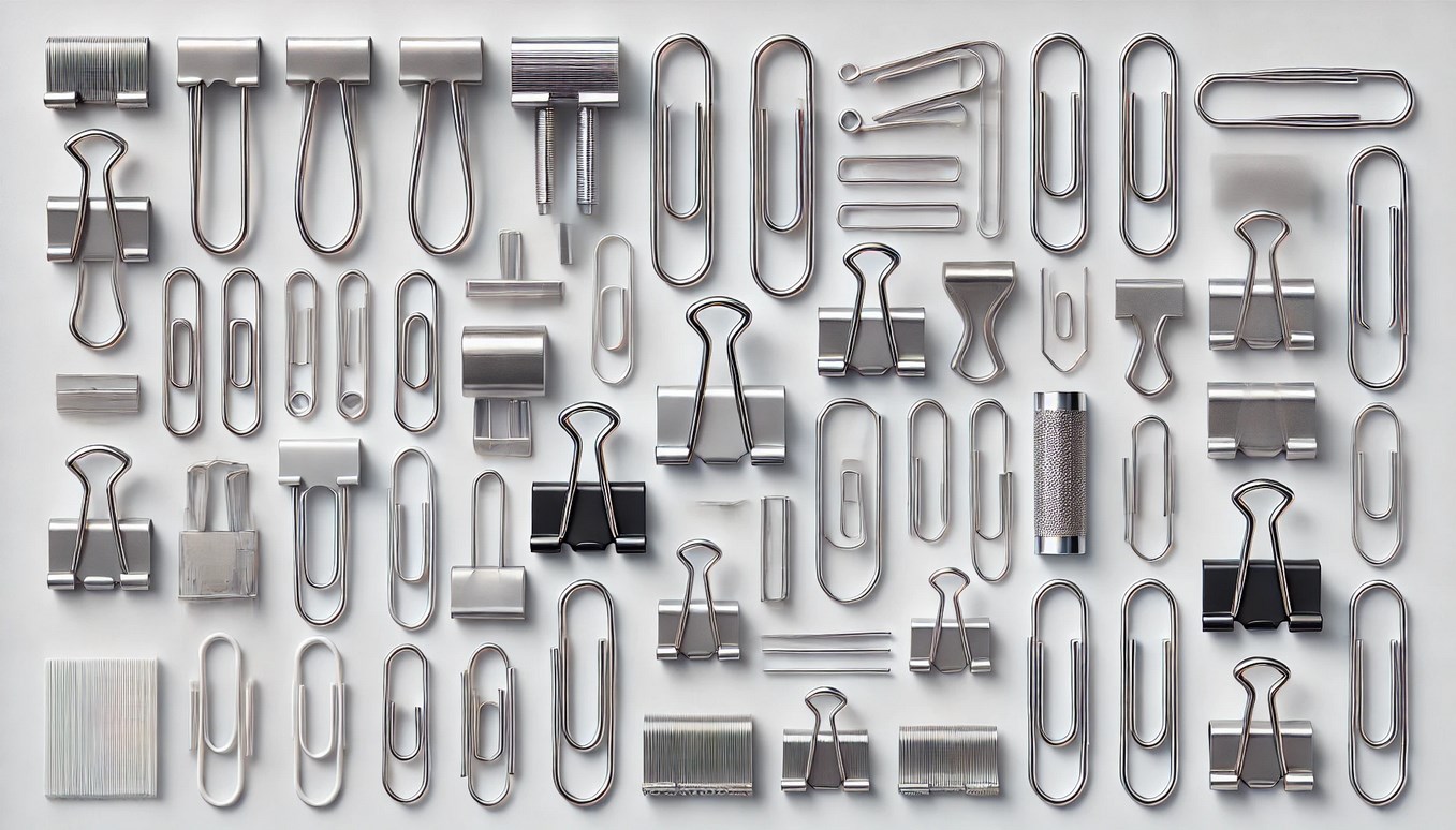 Простота и эффективность скрепок сделали их незаменимым предметом в большинстве офисных принадлежностей. Их легко хранить, они недорогие и очень эффективны для упорядоченного скрепления бумаг. Скрепки — это универсальный инструмент, часто используемый для группировки документов, заметок на страницах блокнотов или прикрепления заметок к папкам. Чаще всего их можно увидеть в офисах, библиотеках, школах и дома.